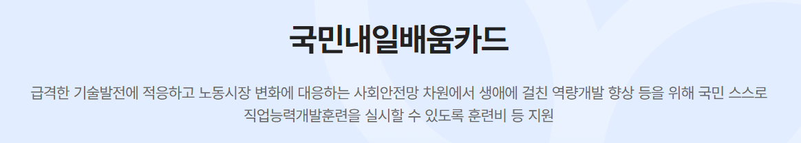 국민내일배움카드는 취업이나 직무 수행에 필요한 교육 및 훈련 비용을 지원하는 제도로, 개인의 직업능력 개발을 촉진하기 위해 마련되었습니다. 이를 통해 개인은 원하는 시기에 필요한 교육을 받아 직무 역량을 향상시키고, 취업 기회를 넓힐 수 있습니다. 국민내일배움카드 신청방법부터 신청자격 등 자세하게 소개해드리겠습니다.
