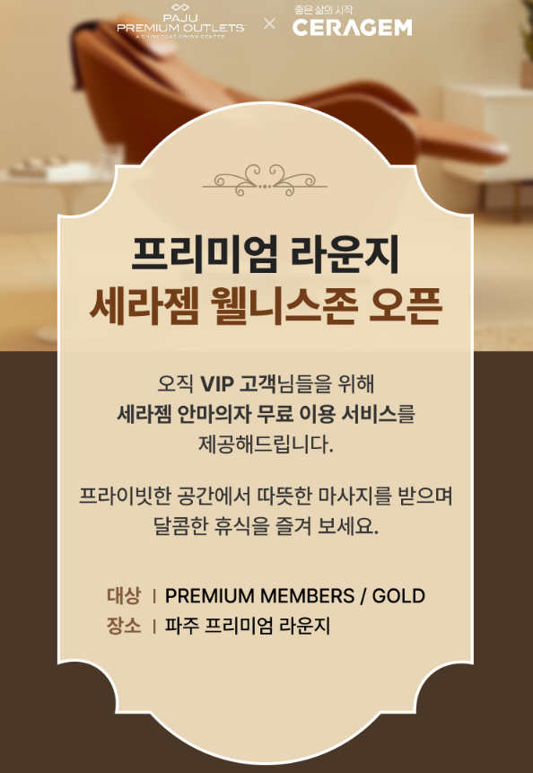 장소: 프리미엄 라운지 내 세라젬 웰니스존