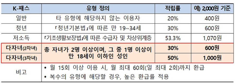 K-패스, 세 자녀 이상은 최대 50% 환급?!